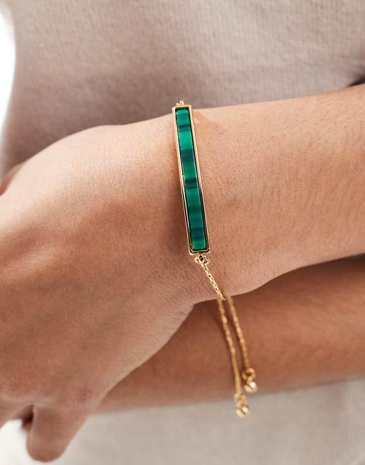 ASOS DESIGN - Bracelet d'amitié en plaqué or 14 carats avec détail en malachite et pochette cadeau