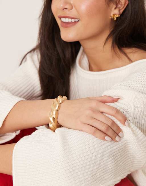 ASOS DESIGN - Bracelet jonc effet torsadé - Doré brossé