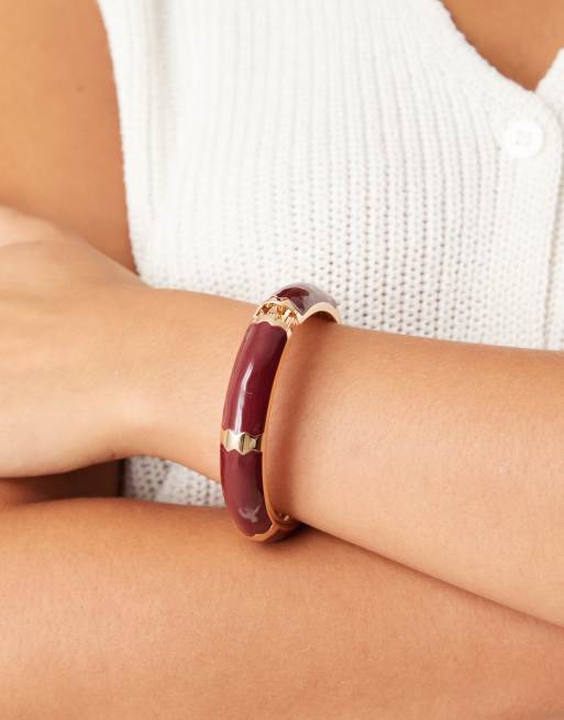 ASOS DESIGN - Bracelet jonc en émail - Doré et bordeaux