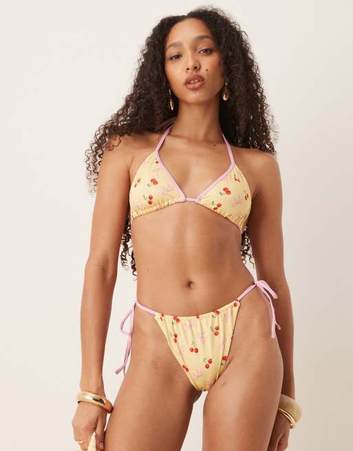 ASOS DESIGN - Brielle - Bikini à imprimé cerise et nœud - Jaune