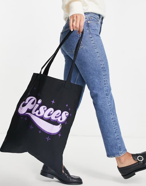 ASOS DESIGN - Cabas en coton motif signe du zodiaque Poissons - Noir
