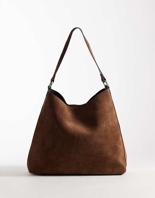 ASOS DESIGN - Cabas en daim avec anse à détails métalliques - Chocolat