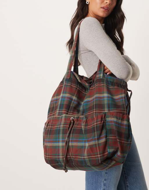 ASOS DESIGN - Cabas froncé en nylon avec poches - Carreaux