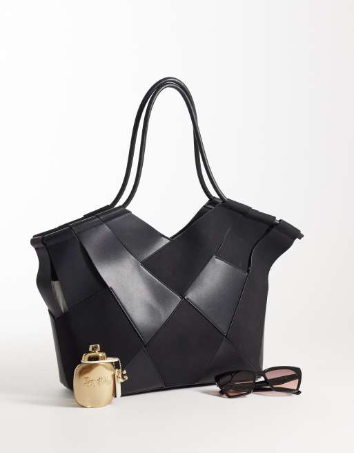 ASOS DESIGN - Cabas tressé en imitation daim et imitation cuir - Noir