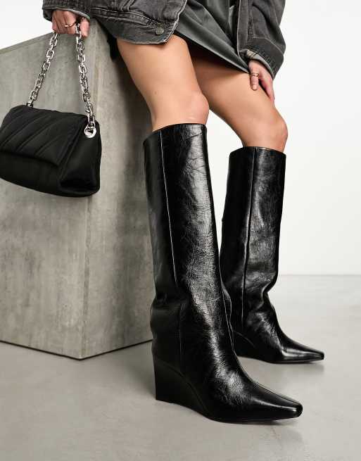 ASOS DESIGN - Cali - Bottes montantes compensées en cuir de qualité supérieure - Noir