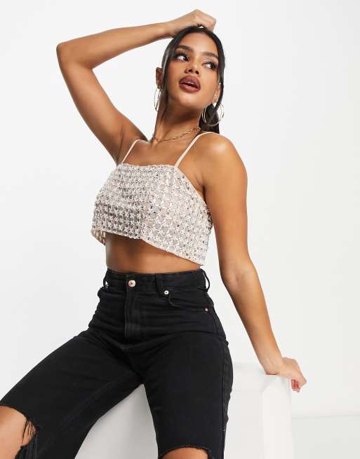 ASOS DESIGN - Caraco court ornementé - Argenté