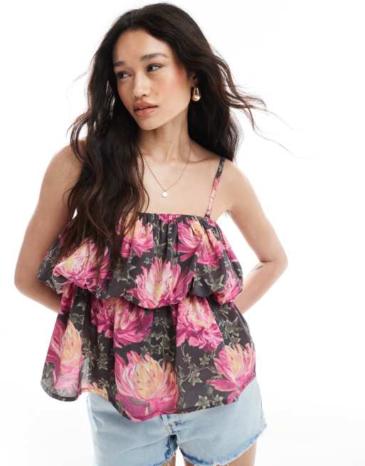 ASOS DESIGN - Caraco de qualité supérieure à imprimé fleuri avec ourlet à basque et détail bouffant