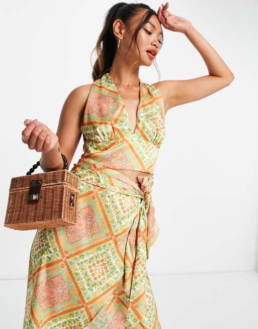 ASOS DESIGN - Caraco dos nageur style années 70 en satin imprimé foulard