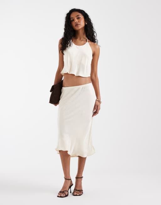 ASOS DESIGN - Caraco dos nu d'ensemble à encolure échancrée en satin jacquard - Crème