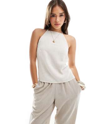 ASOS DESIGN - Caraco en aspect lin à dos ouvert - Grège
