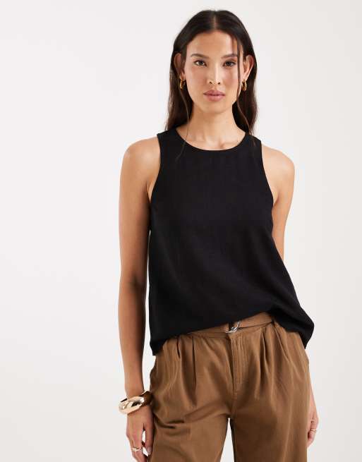 ASOS DESIGN - Caraco en lin avec encolure dégagée et bretelles croisées dans le dos - Noir