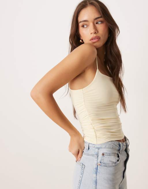 ASOS DESIGN - Caraco près du corps avec bretelles fines et fronces latérales - Jaune babeurre