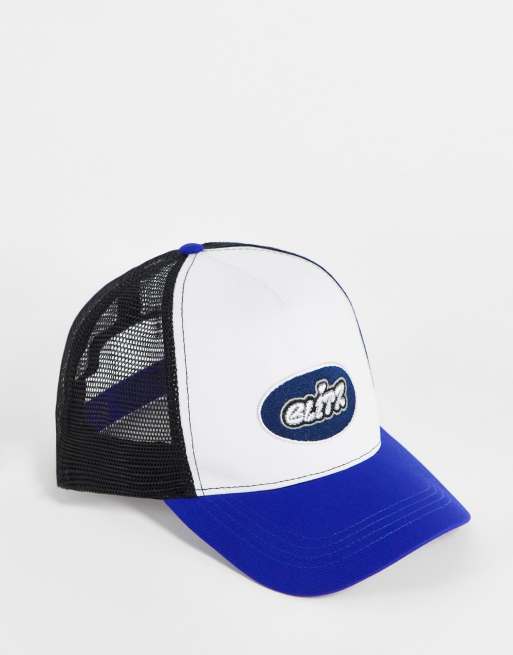 ASOS DESIGN - Casquette camionneur avec broderie - Bleu et blanc