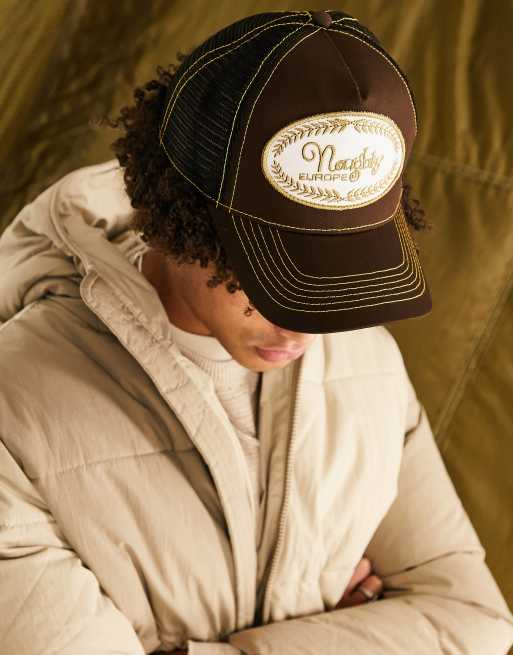 ASOS DESIGN - Casquette camionneur avec écusson - Marron chocolat