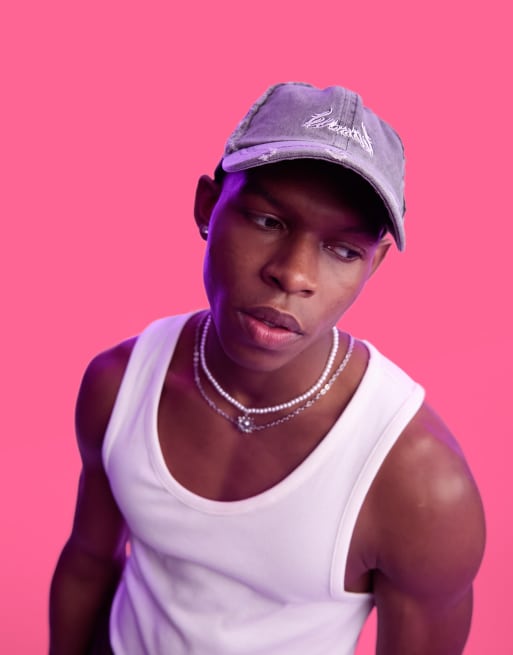 ASOS DESIGN - Casquette de baseball en denim effet usé doux au toucher avec broderie tatouage - Noir délavé