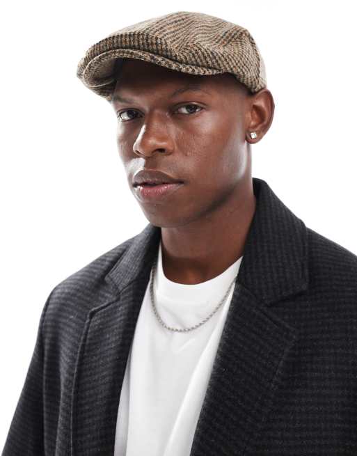 ASOS DESIGN - Casquette plate en laine melton à carreaux