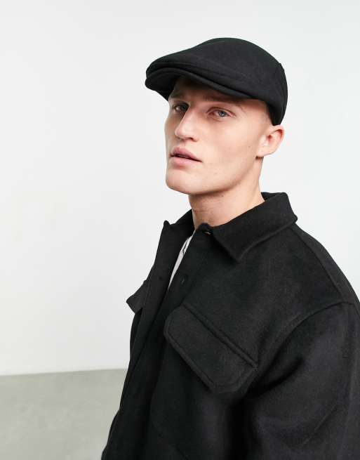 ASOS DESIGN - Casquette plate en laine melton - Noir