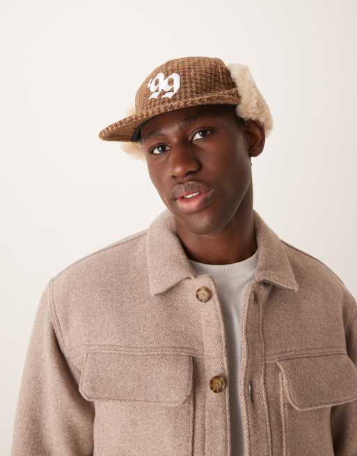 ASOS DESIGN - Casquette style trappeur à carreaux - Marron