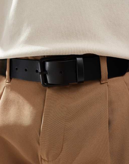 ASOS DESIGN - Ceinture élégante en cuir avec boucle noir mat - Noir