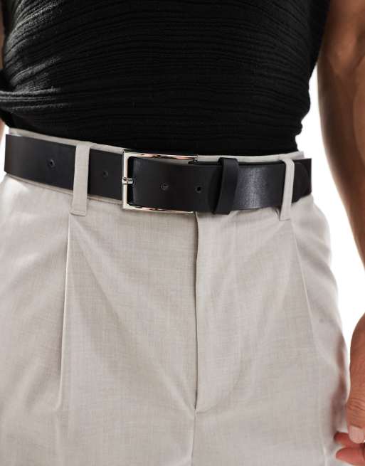 ASOS DESIGN - Ceinture élégante en imitation cuir avec boucle argentée - Noir