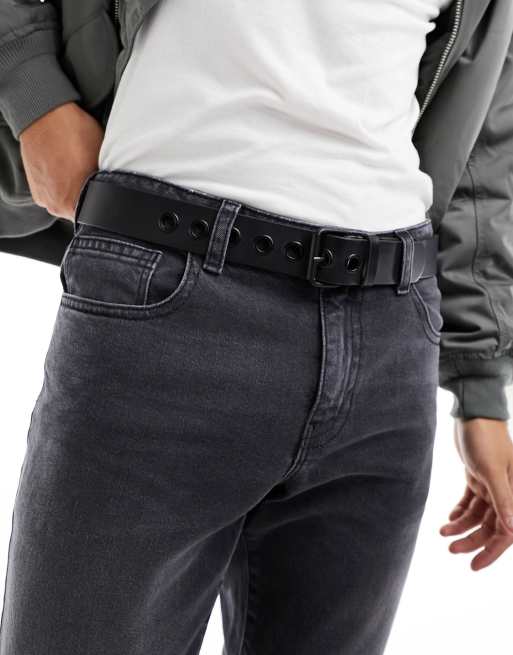 ASOS DESIGN - Ceinture en cuir avec œillets oversize - Noir