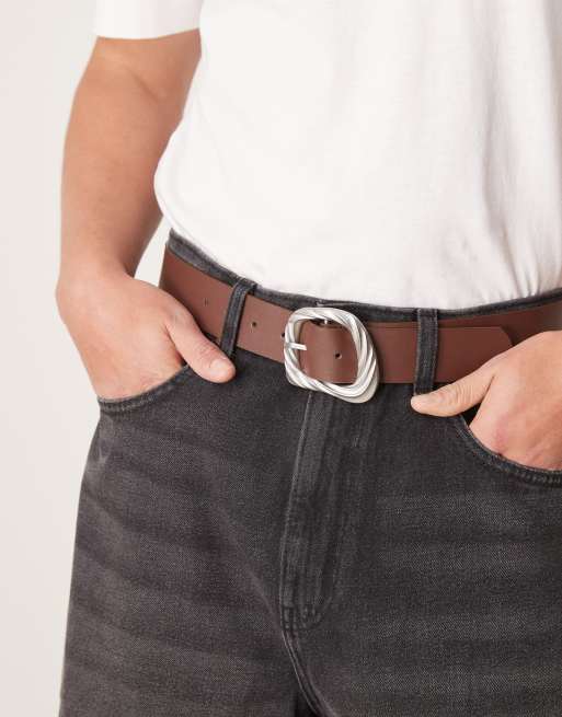 ASOS DESIGN - Ceinture en imitation cuir avec boucle effet fondu - Marron