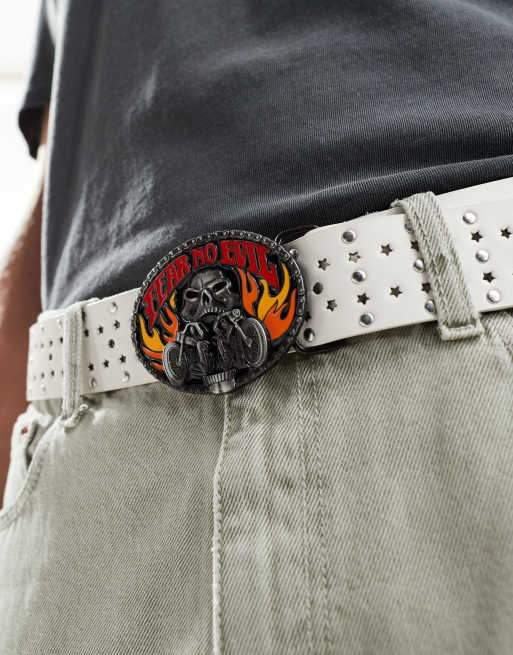 ASOS DESIGN - Ceinture en similicuir avec clous et boucle style motard - Blanc