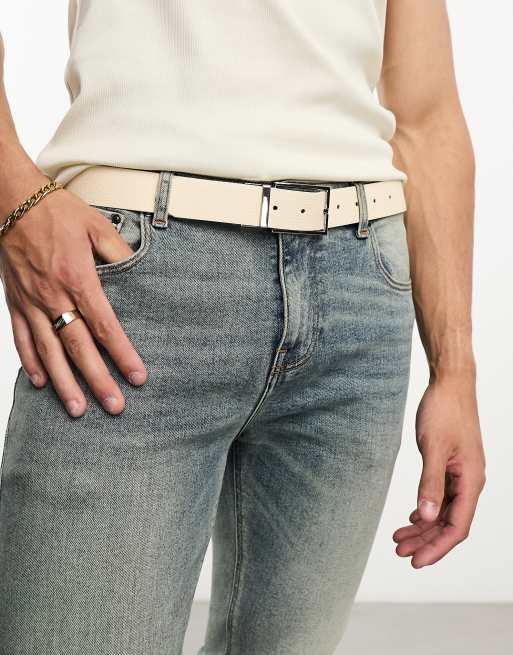 ASOS DESIGN - Ceinture en similicuir texturé - Écru