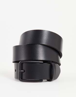ASOS DESIGN - Ceinture fine en cuir avec boucle carrée noir mat - Noir