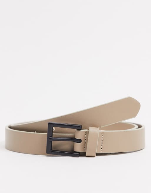 ASOS DESIGN - Ceinture fine en similicuir avec boucle rectangulaire noir mat - Beige