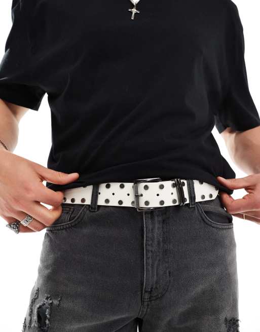ASOS DESIGN - Ceinture imitation cuir avec clous et boucle - Blanc