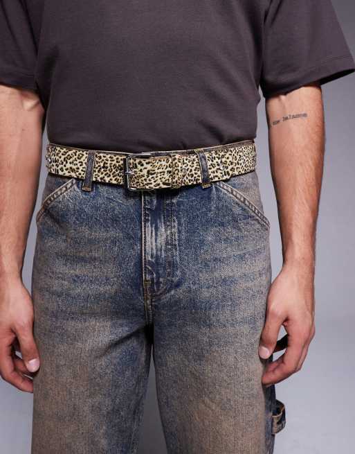 ASOS DESIGN - Ceinture léopard en similicuir avec clous à strass - Beige