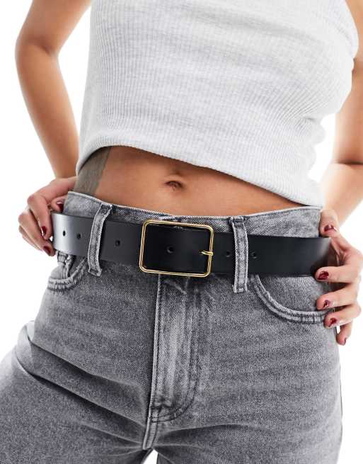 ASOS DESIGN - Ceinture taille basse en cuir à boucle carrée