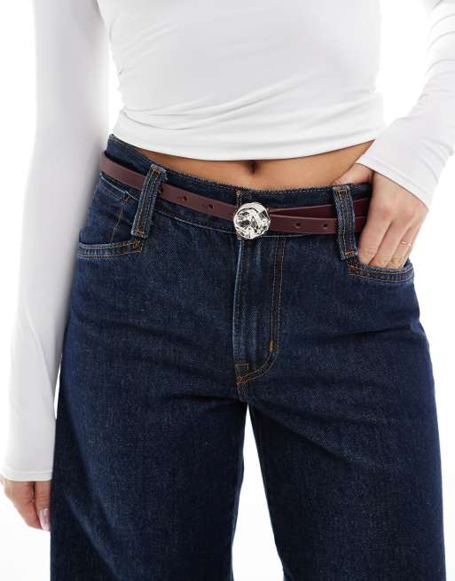 ASOS DESIGN - Ceinture taille et hanches en cuir avec boucle ronde martelée - Bordeaux