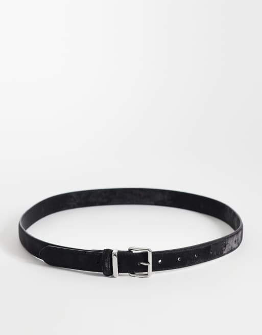 ASOS DESIGN - Ceinture taille et hanches en imitation daim avec boucle carrée - Noir effet usé