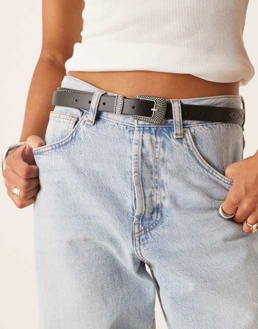 ASOS DESIGN - Ceinture taille et hanches pour jean avec clous style western - Noir