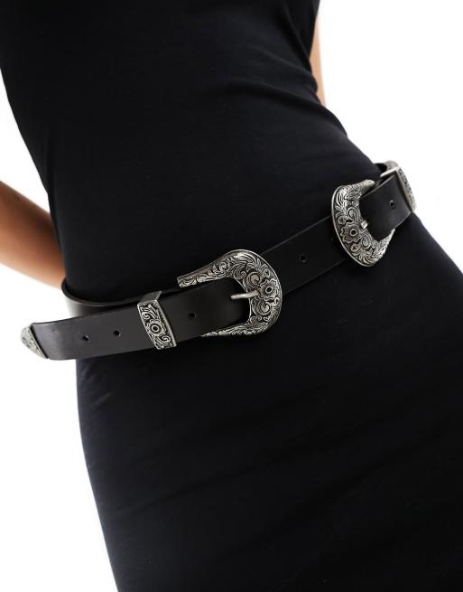 ASOS DESIGN - Ceinture taille ou hanches en cuir à double boucle style western - Argenté