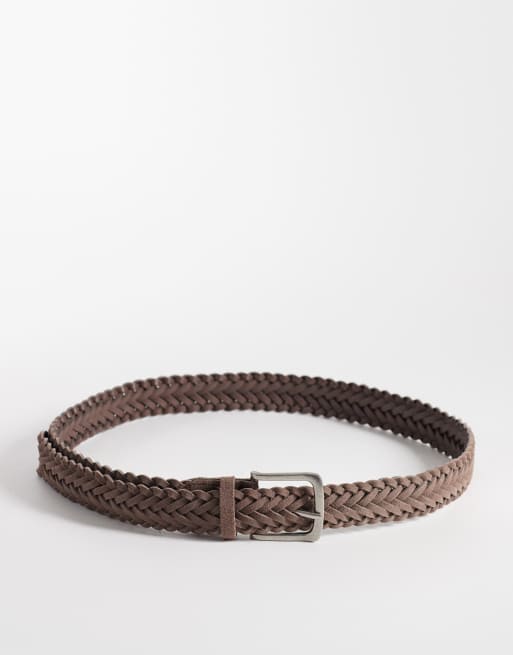 ASOS DESIGN - Ceinture tressée en daim à boucle argentée - Taupe