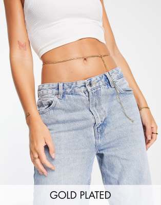 ASOS DESIGN - Chaîne de ventre à maillons alternés en plaqué or 14 carats - Doré