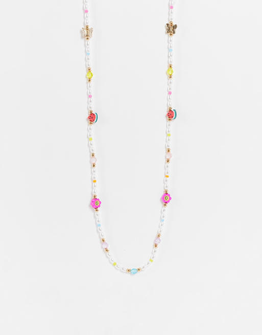 ASOS DESIGN - Chaîne pour lunettes de soleil avec fleurs ornées d'un smiley et perles