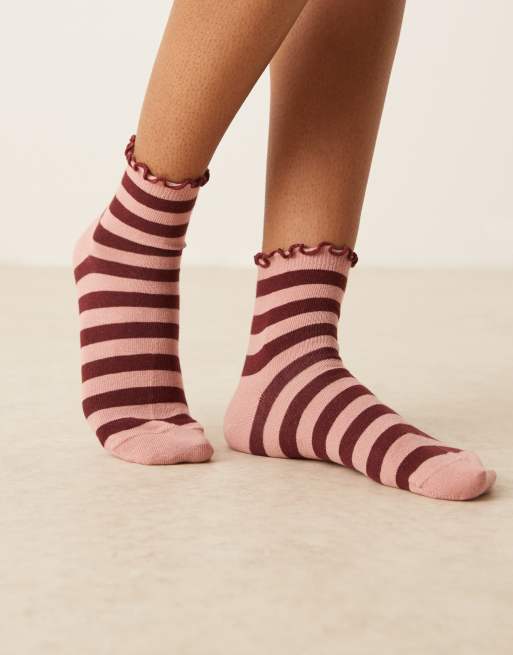 ASOS DESIGN - Chaussettes à bord volanté - Rose/rouge