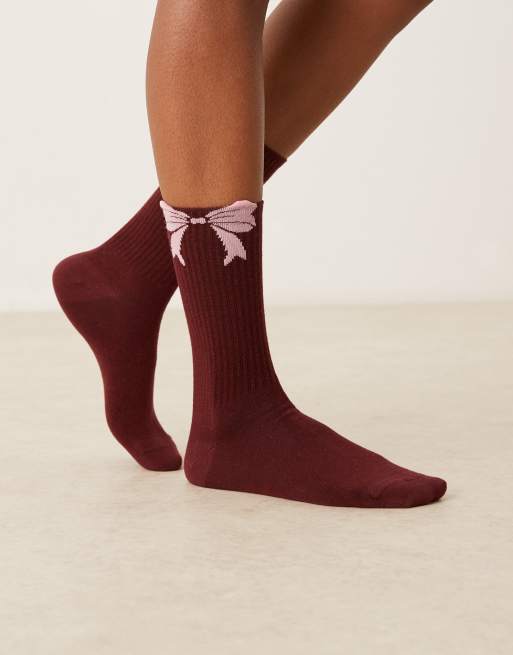 ASOS DESIGN - Chaussettes à détail nœud - Bordeaux et rose