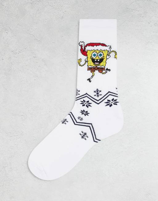 ASOS DESIGN - Chaussettes à imprimé Bob l'éponge - Blanc