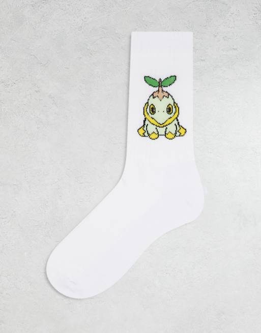 ASOS DESIGN - Chaussettes à motif Pokémon Turtwig - Blanc