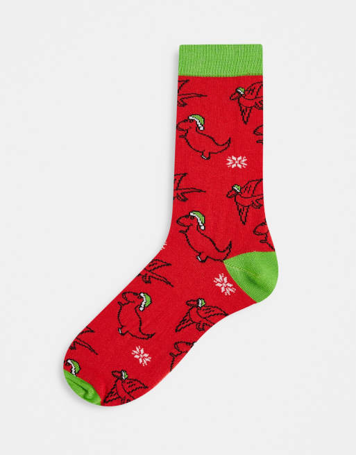 ASOS DESIGN - Chaussettes de Noël à motif dinosaure - Rouge