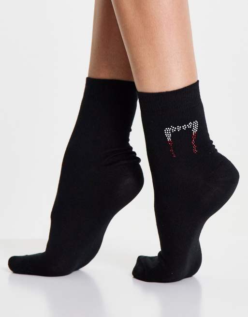 ASOS DESIGN - Chaussettes montantes avec motif vampire hotfix - Noir