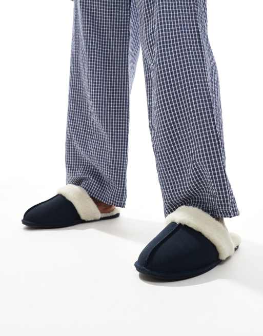 ASOS DESIGN - Chaussons à enfiler imitation daim avec doublure imitation peau de mouton - Bleu marine
