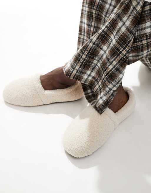 ASOS DESIGN - Chaussons imitation peau de mouton - Crème