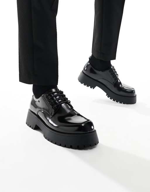 ASOS DESIGN - Chaussures chunky à lacets en imitation cuir - Noir