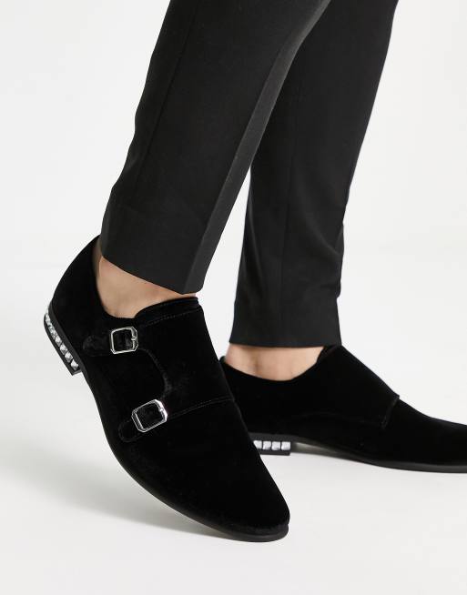 ASOS DESIGN - Chaussures derby en velours avec talon à strass et double bride - Noir